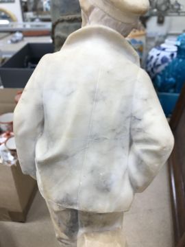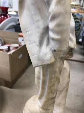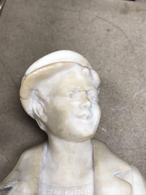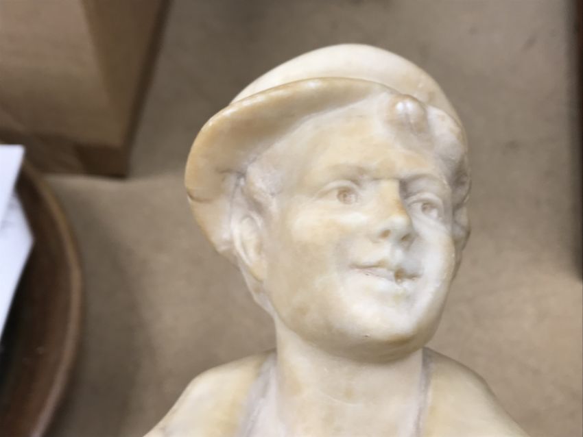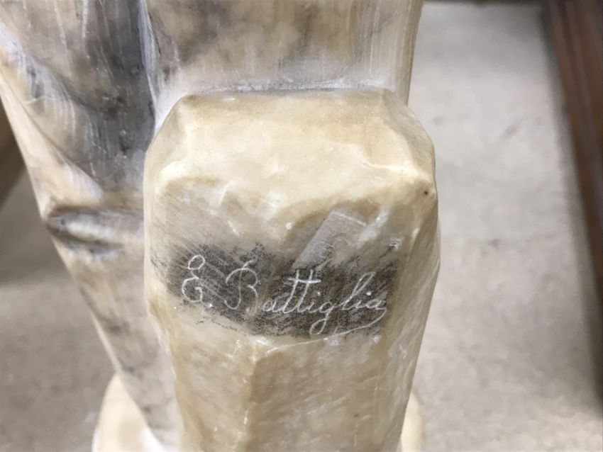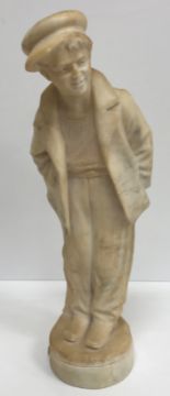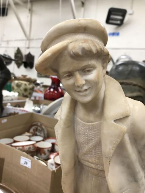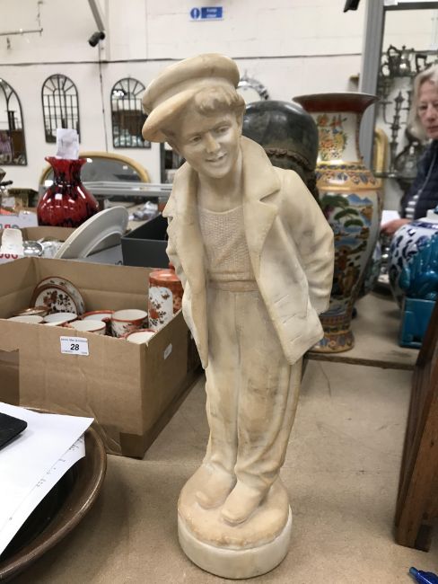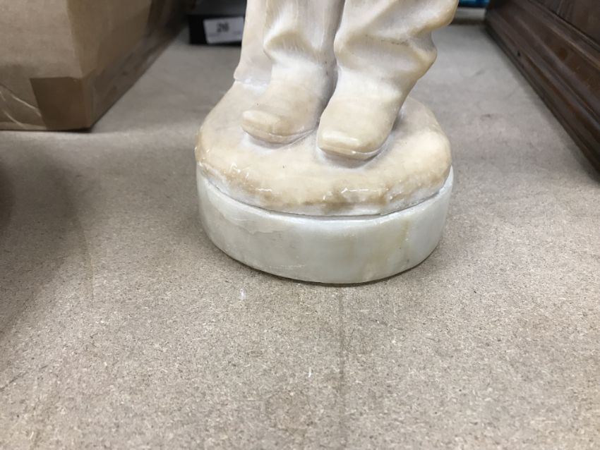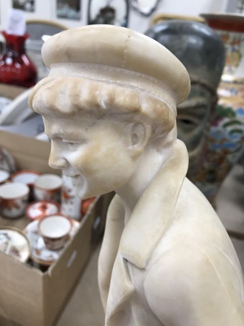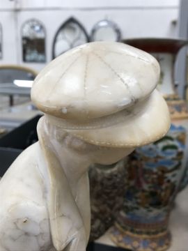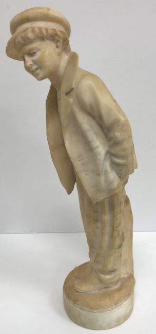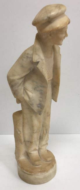 A carved alabaster figure of a young sailor, signed "E Battiglia (Eugenio)", 41 cm high