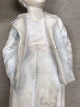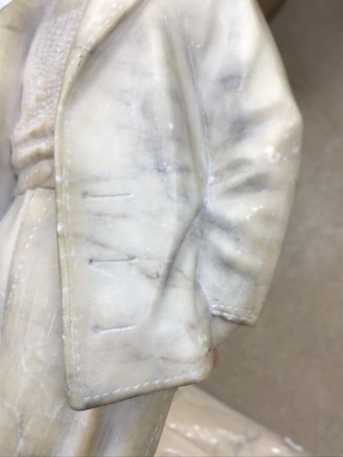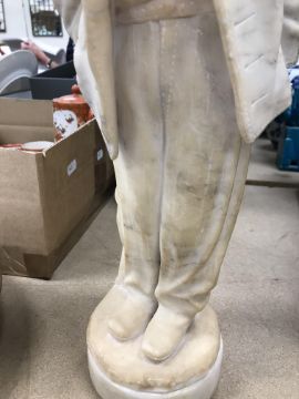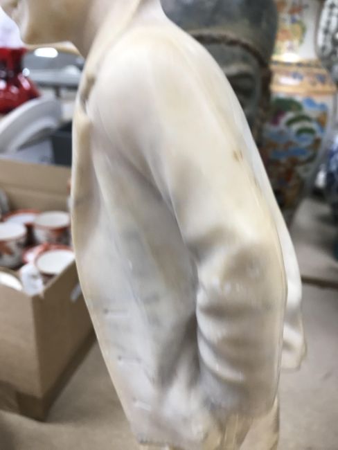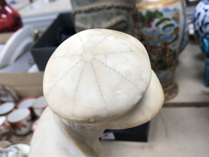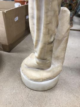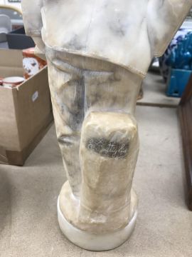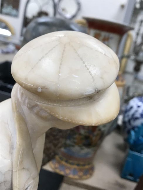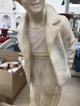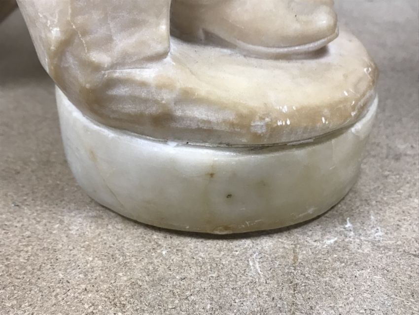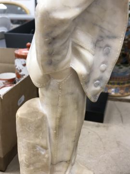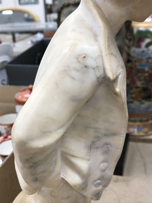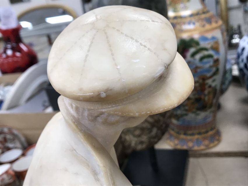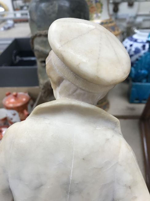 A carved alabaster figure of a young sailor, signed "E Battiglia (Eugenio)", 41 cm high