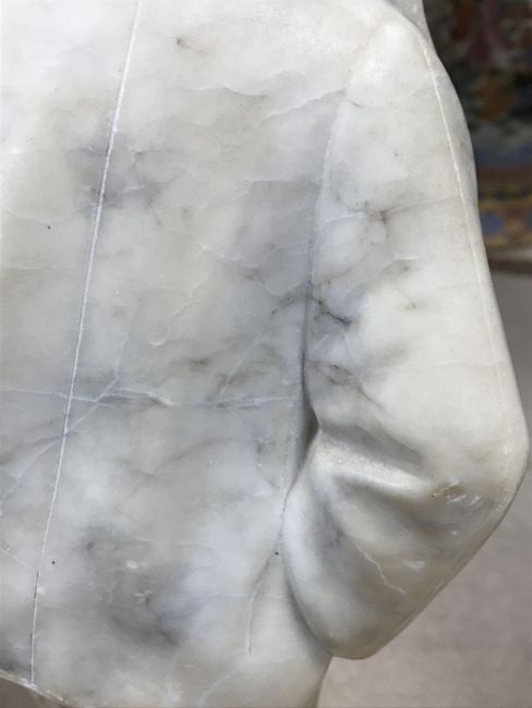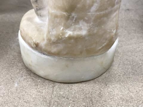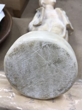 There are several knocks and bumps to the extremities throughout. Base appears to have been off or is a later addition with remnants of old glue / other adhesive. Otherwise general wear and tear conducive with age and use. See images for further detail.