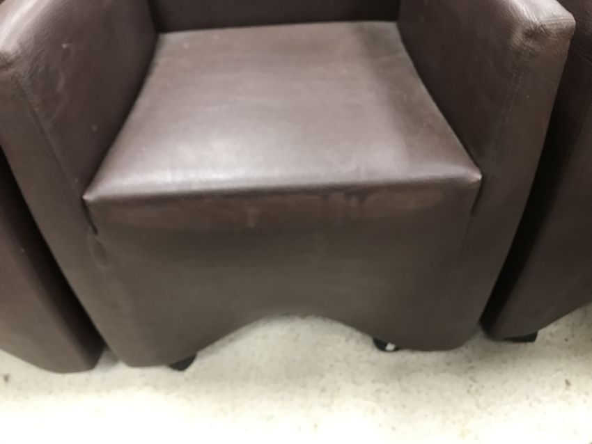 All have clearly been barn stored. Several have their clear clothing tags on them. Some puckering to the leather on the seats. In need of a good clean. There seems to be a split on most of them, therefore assumingly a design fault, at the base of each arm at the back join. Marks etc to the leather on most. Several have marks to the leather at the front. Wear and tear conducive with heavy use - see images for examples