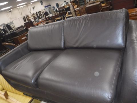 A Habitat brown leather upholstered two seat sofa, 180 cm wide x 92 cm deep x 79 cm high