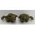 Two 19th Century Chinese bronze dog of Fo figures with hollow bases, possibly brush holders, 7 cm long x 3.5 cm high, a 19th Century Chinese carved bone netsuke as a figure in robes with hat, 6 cm high and a small brass oil lamp, 6.5 cm long