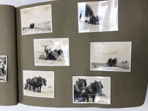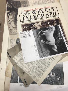 CECILY JOAN LYNE one photograph album circa 1920-30 depicting various local and other scenes and figures including beagles, hounds, workmen, family, dressing up and travels various together with an album of various newspaper cuttings from Country Life and Birmingham Post etc of photographs taken by Cecily Joan Lyne etc (Provenance: The photographer thence to Michael Lyne and thence by descent)