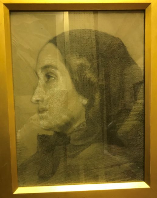 JEAN FRANCOIS GIGOUX (1806-1894) "Venetia Dunde? in Paris", a portrait study, head and shoulders, charcoal and chalk, apparently unsigned, inscribed on handwritten label verso, 30.5 cm x 23 cm