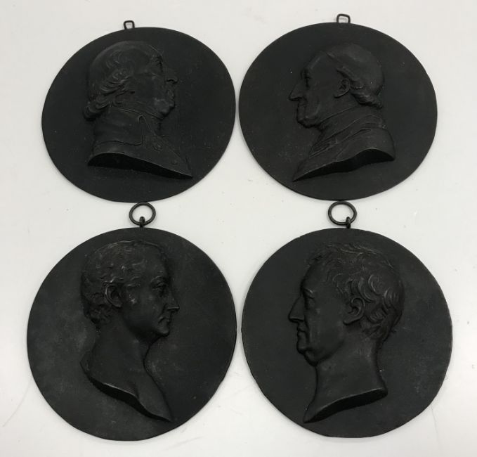 A set of four 19th Century cast iron portrait medallions, one inscribed verso "NV1 - 181 Herder", 9.5 cm diameter