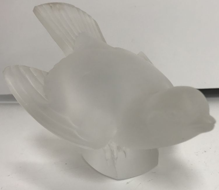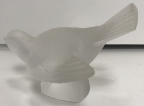 A Lalique "Moineau Colereux" frosted glass figure of a sparrow, signed "Lalique France" to base, 8 cm high