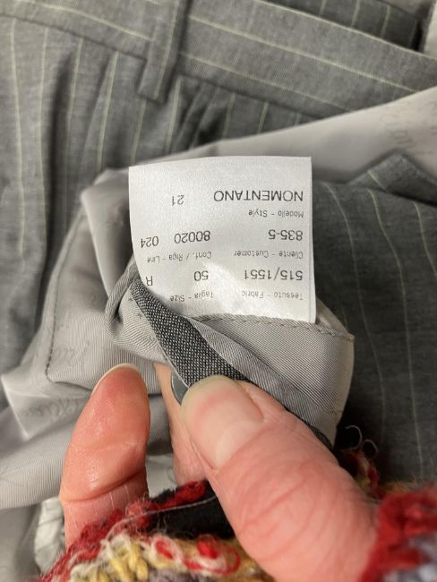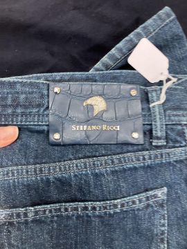 A collection of mens clothing comprising a Maggi evening suit of jacket and trousers, a Palzileri jacket, an Amadeus cashmere navy full length coat, a pair of Stefano Ricci jeans, a Hugo Boss suit comprising jacket and trousers, two Brioni suits comprising jackets and trousers (for sizes see images) (11)