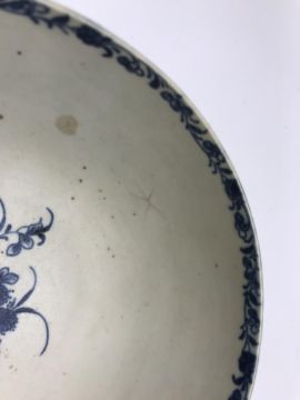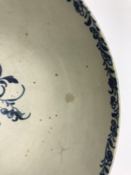 Star crack to main body visible to the interior, lots of staining and discolouration, some firing faults, particularly to the bottom rim of the foot, surface scratches, etc throughout. Absolutely filthy and in need of a good clean. General wear and tear conducive with age and use. See images for more details.