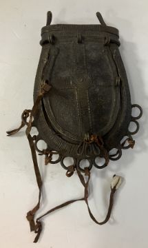 A Benin bronze flask with snake decoration, 14.5 cm wide x 19.5 cm high