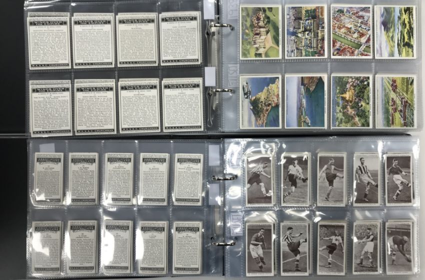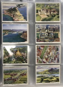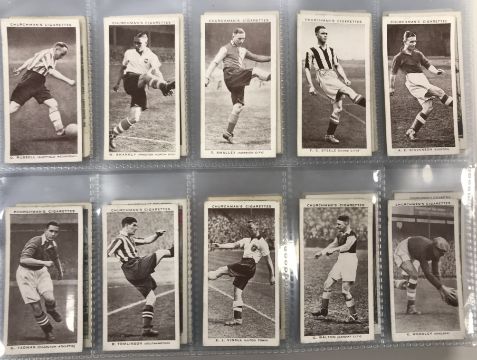 Two albums of Churchman's cigarette cards circa 1912-39 including Phil May Cartoons 1912 (x 5), Army Badges of Rank 1916 (x 6), Cathedrals and Churches 1924 (x 22), Railway Working 1927 (x 5), Men of the Moment in Sport 1928 (x 5), Lawn Tennis 1928 (full set), Empire Railways 1931 (x 3), Can you beat Bogey at St. Andrews? 1934 (x 14), Racing Greyhounds 1934 (x 34), Cricketers 1936 (x 23), The Queen Mary 1936 (full set), Association Footballers 2nd Series 1939 (missing No. 5) and 17 various other cards and a second album containing Howlers 1937 (full set), RAF at Work 1937 (45/48), Holiday in Britain 1937 (full set), The Navy at Work 1937 (full set), Holidays in Britain 1938 (full set), Modern Wonders 1938 (29/48), Air Raid Precautions 1938 (full set), Wings over the Empire 1939 (full set)