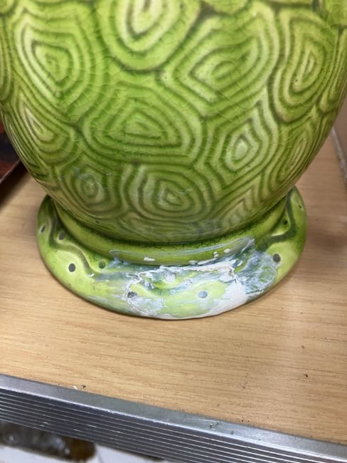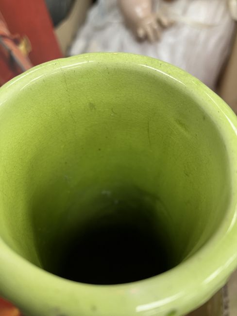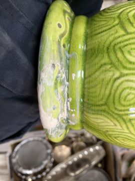 The Burmantofts only: has had area of damage/repair to the foot, has all over crazing, in need of a clean, general wear and tear conducive with age and use - see images for more details