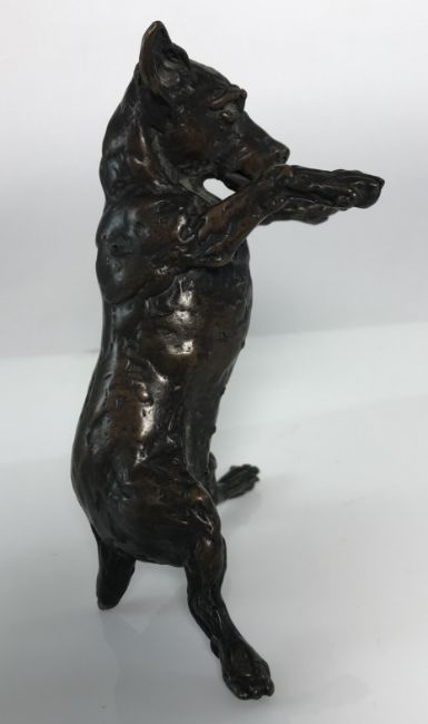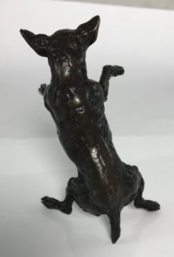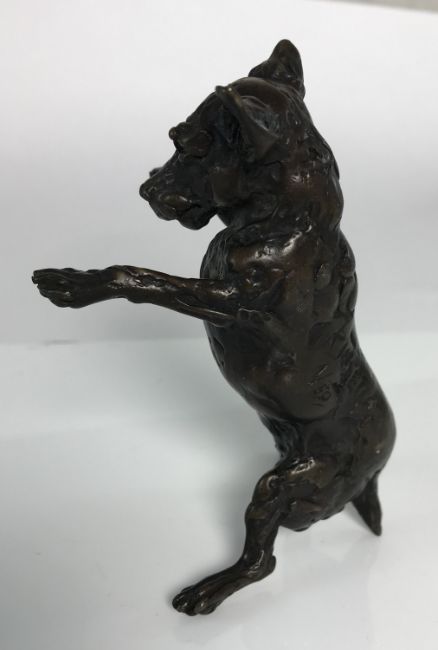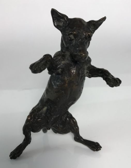 LUCY KINSELLA (b. 1960) "Jack Russell terrier on hind quarters" a chocolate patinated bronze, signed within the casting and No'd 1/50, 12 cm high (ARR)