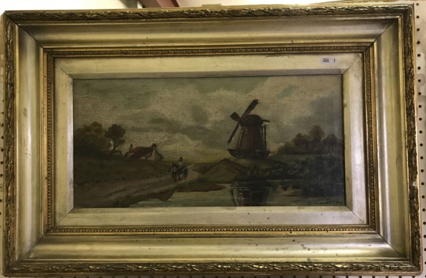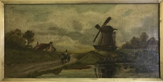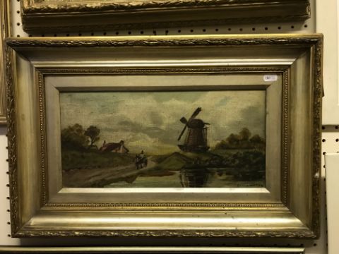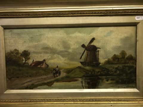 C H W LAIGHT "Windmill with horse and cart and pond in foreground", oil on canvas, signed and dated '98 lower right, 20.5 cm x 41 cm