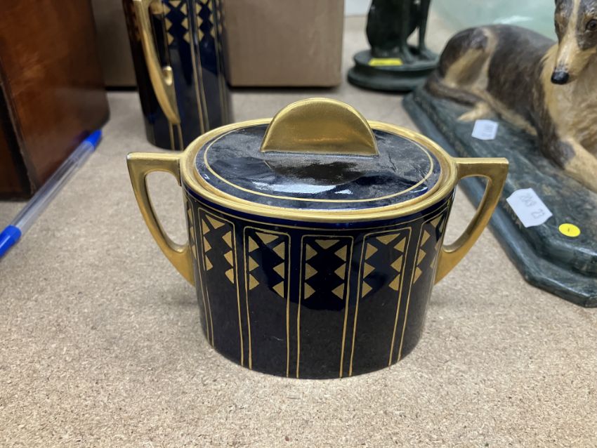 Ernst Wahliss pieces only - the lidded milk jug has hairline cracks running throughout. The three coffee cans with triangular decoration - two have significant hairline cracks/repairs and chips and the third has a large chip. The two matching saucers have some surface scratching. The three similar plain coffee cups have some small chips and roughness to the bottom edges. The three similar plain saucers - two are marked as Vienna, the other as KPM. All have light scratching, all pieces are in need of a good clean, have heavy wear and tear conducive with age and use - see images for more details