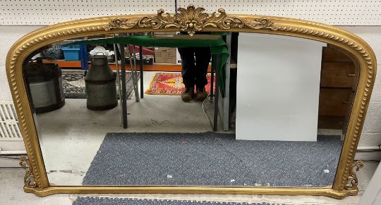 A modern Joseph McCartney of Tunbridge Wells giltwood and gesso framed overmantel mirror in the Regency taste, with scrolling acanthus surmount and base decorations, enclosing a bevel edged plate, 180 cm wide x 102 cm high