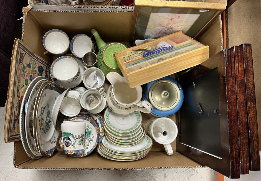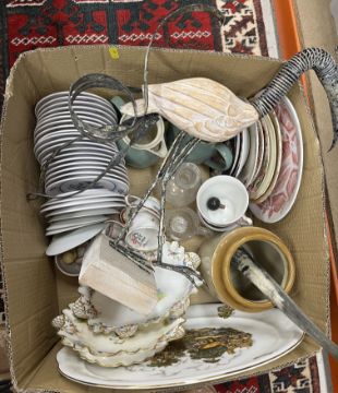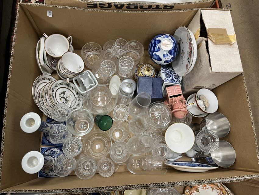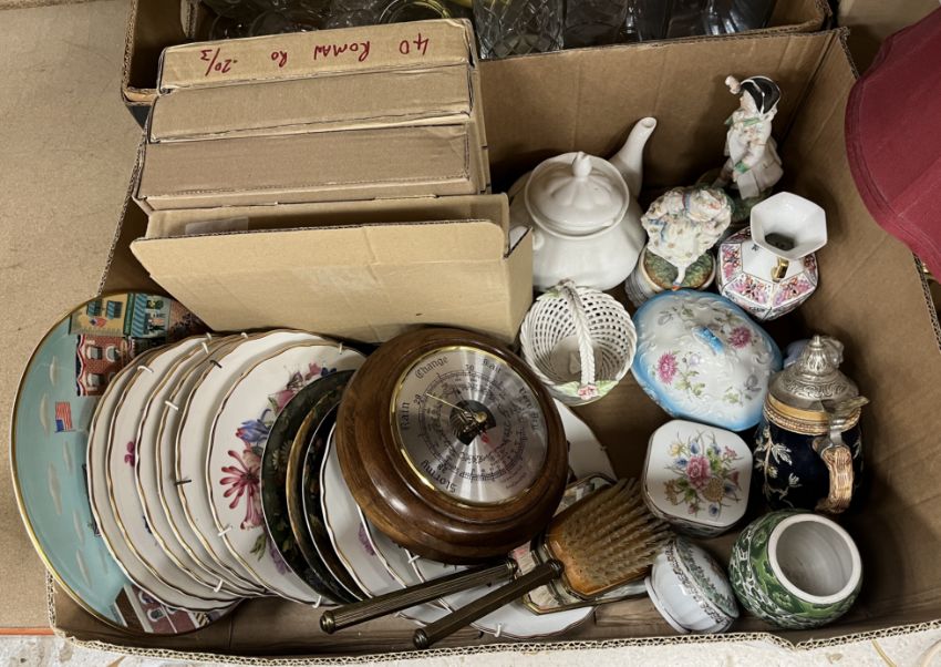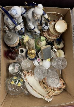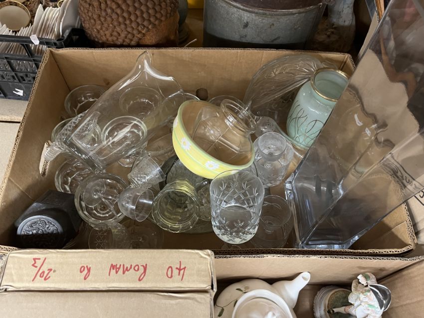 Six boxes of assorted decorative china and glassware to include ornaments, tea wares etc (6 boxes)