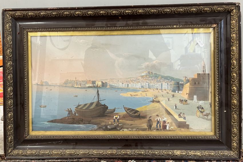 19TH CENTURY NEOPOLITAN SCHOOL "View of Naples" watercolour gouache, unsigned, 30cm x 56cm