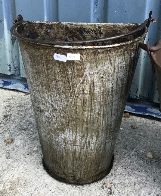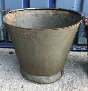 A graduated set of three garden pails in the vintage manner, largest 30 cm high excluding handle, together with a bucket style wall planter, 31 cm excluding handle