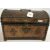 A 19th Century brass studded leather dome top trunk of small proportions with brass swing handle, opening to reveal a green velvet-lined interior, on brass ball feet, 26.5 cm wide x 17 cm deep x 18 cm high